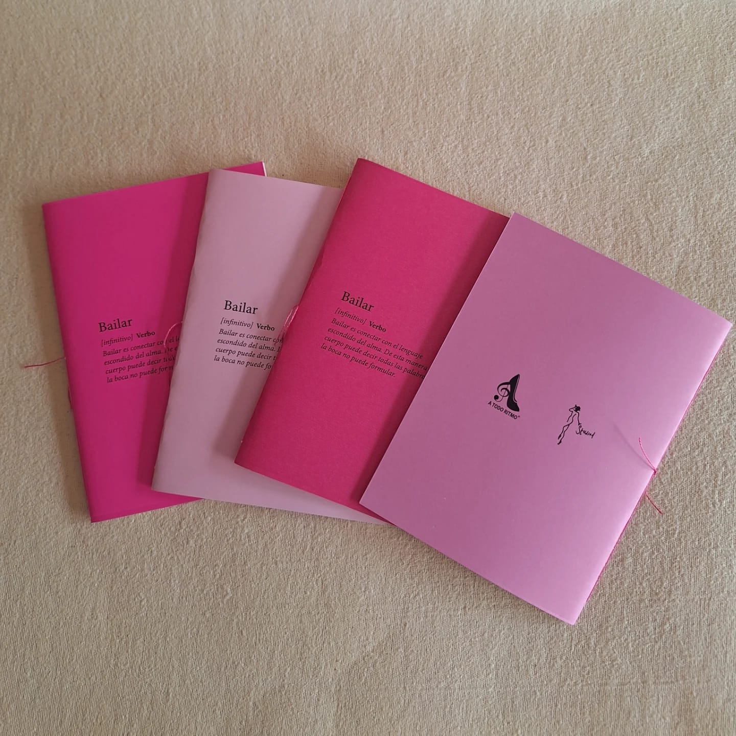 100 cuadernos rayados hechos para la muestra de baile 2024 de @studio1_danzas. Diseño de tapa , propuesta visual del cuaderno y encuadernación artesanal.